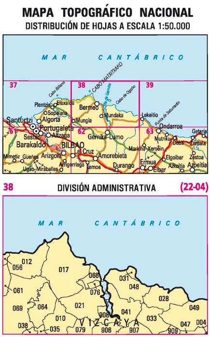 Wandelkaarten Bermeo (gemeente) Biskaje, Baskenland Spanje en Biskaje (provincie) Baskenland Spanje van Centro Nacional de Informacion Geografica. Ideaal voor tochten in Spanje.