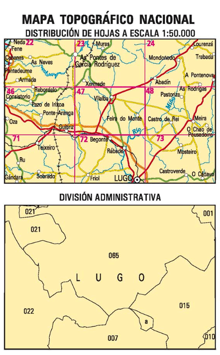 Wandelkaarten Vilalba (gemeente) Lugo, Galicië Spanje en Lugo (Provincie) Galicië Spanje van Centro Nacional de Informacion Geografica. Ideaal voor tochten in Spanje.