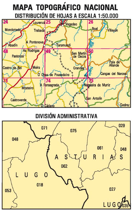 Wandelkaarten Grandas (gemeente) Asturië, Asturië Spanje en Asturië (provincie) Spanje van Centro Nacional de Informacion Geografica. Ideaal voor tochten in Spanje.
