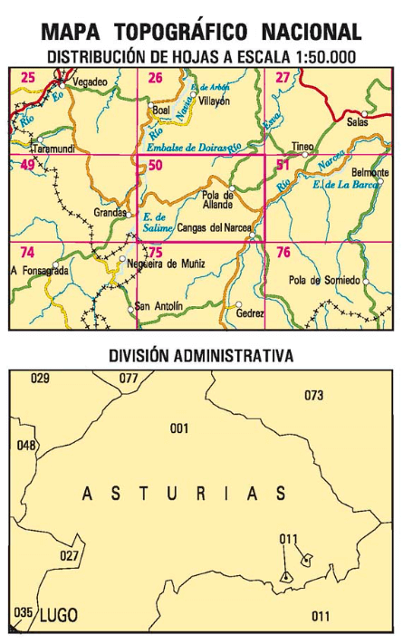 Wandelkaarten Cangas del Narcea (gemeente) Asturië, Asturië Spanje en Asturië (provincie) Spanje van Centro Nacional de Informacion Geografica. Ideaal voor tochten in Spanje.