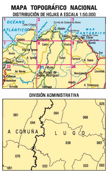 Wandelkaarten Viveiro (gemeente) Lugo, Galicië Spanje en Lugo (Provincie) Galicië Spanje van Centro Nacional de Informacion Geografica. Ideaal voor tochten in Spanje.
