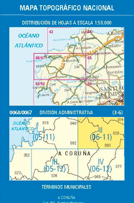 - Wandelkaart 0068.1/67.2 Camariñas, A Coruña Galicië - CNIG