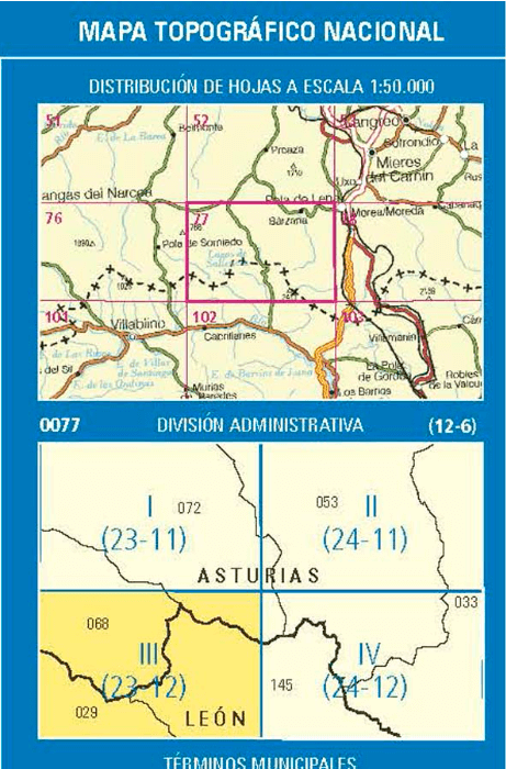 - Wandelkaart 0077.2 bárzana, Quirós Asturië - CNIG