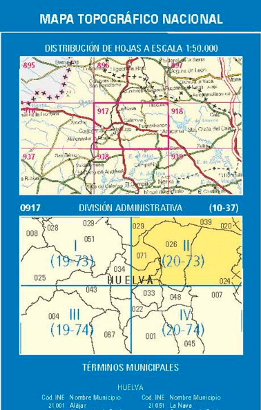 Wandelkaarten Cortelazor (gemeente) Huelva, Andalusië Spanje en Huelva (gemeente) Huelva, Andalusië Spanje van Centro Nacional de Informacion Geografica. Ideaal voor tochten in Spanje.