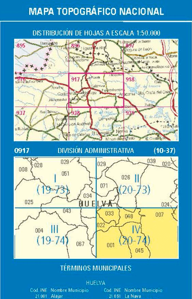 Wandelkaarten Aracena (gemeente) Huelva, Andalusië Spanje en Huelva (gemeente) Huelva, Andalusië Spanje van Centro Nacional de Informacion Geografica. Ideaal voor tochten in Spanje.