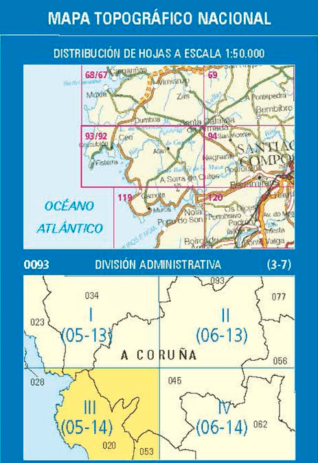 Wandelkaart 0093.3 O Pindo, Carnota A Coruña, Galicië - CNIG