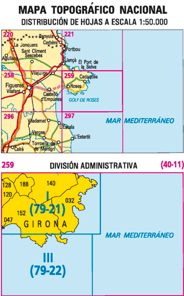 Wandelkaarten Far de Roses (gemeente) Girona, Catalonië en Girona (provincie) Catalonië, Spanje van Centro Nacional de Informacion Geografica. Ideaal voor tochten in Spanje.
