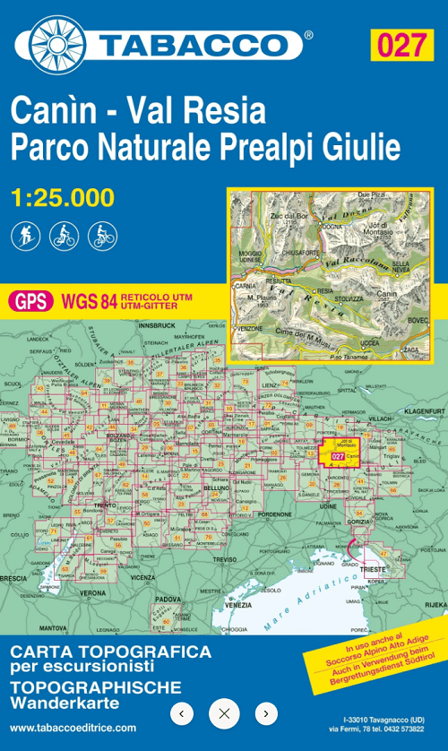 Wandelkaart 027 Mt. Canin, Val Resia & PN Prealpi Giulie- Tabacco