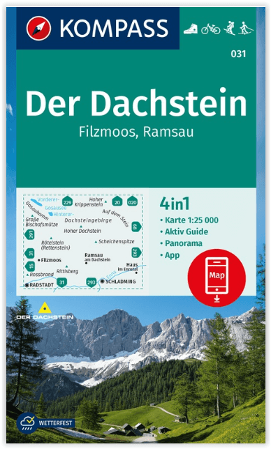 Wandelkaart Der Dachsteinmassief - Kompass Productomschrijving: Het Dachsteinmassief ligt in de Oostenrijkse Salzburg, 45 kilometer ten zuidoosten van de hoofdstad. De top van de Dachstein b...