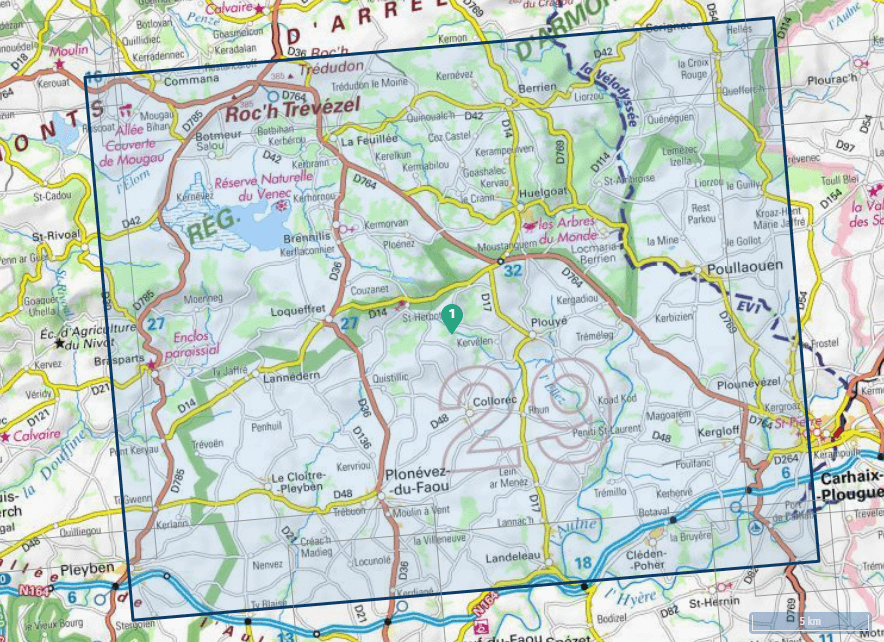 Productomschrijving: Deze omvat de gloednieuwe versie van de topografische wandelkaart voor West Bretagne, meerbepaald rond Huelgoat & Monts d'Arrée, in het departement van de Finistère en Côte d'Armor in West Bretagne.