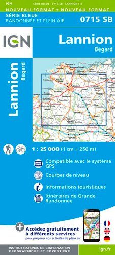 Wandelkaart 0715 SB - Lannion & Bégard - IGN Productomschrijving: Lannion & Bégard zijn gemeentes in het Franse departement Côtes-d'Armor, in de regio Bretagne. De plaats maakt deel uit van ...