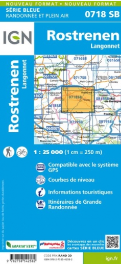 Nieuwe versie - Wandelkaart 0718 SB - Rostrenen & Langonnet - IGN