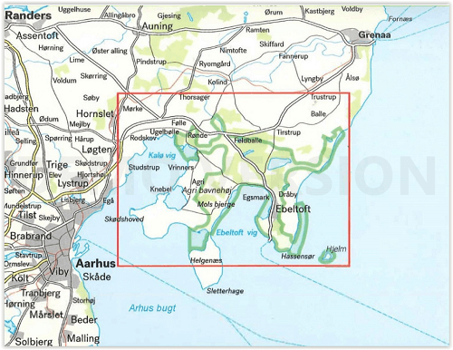 Calazo outdoorkaarten zijn een nieuwe serie outdoorkaarten ontwikkeld met de focus op wandelen, kajakken of kanoën, fietsen en mountainbiken. Deze kaart is ontwikkeld met een focus op het buitenleven in het Nationaal Park Mols Bjerge, waar de lokale wandelpaden en mountainbikeroutes zorgvuldig worden beschreven. U vindt er ook gedetailleerde informatie over vrije kampeerterreinen en tentplaatsen, overkappingen, parkeermogelijkheden en tips over accommodatie en overnachtingen enz.