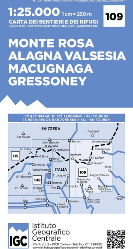 Wandelkaart 109 Monte Rosa, Alagna Valsesia, Macugnaga, Gressoney