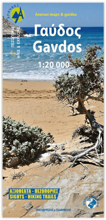 Wandelkaart Gavdos Griekenland - Anavasi Productomschrijving: De wandelkaart van het eiland Gavdos in de Libische Zee in Griekenland, in een schaal van 1:20 000, met zijn topografische achte...