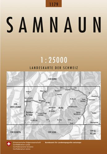 Wandelkaart Samnaun - Graubunden Zwitserland - Swisstopo Productomschrijving: Kaart 1179 - Gelegen in het Innerwald, is deze omgeving zoals op kaart 1178 (Gross Litzner) zeer moeilijk voor d...