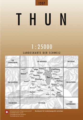 Wandelkaart Thun - Bern Zwitserland - Swisstopo Productomschrijving: Kaart 1207 - Aan de kust gelegen van de Thunersee, tussen het Bluemisteiwald en her Ruerwald Detail: Zeer gedetaillee...