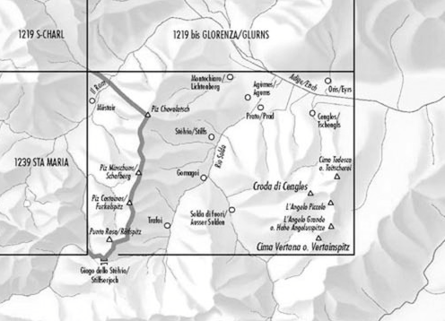 Wandelkaart bis Müstair - Graubunden Zwitserland - Swisstopo Productomschrijving: Kaart 1239bis - Gelegen in het Parc Naziunal Svizzer aan de Italiaanse grens vlak aan het werledbekende Parc...