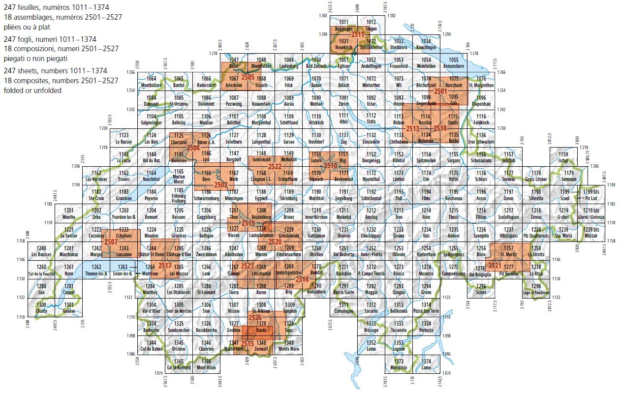 Swisstopo - 1.25.000 wandelkaarten 1011 > 1374