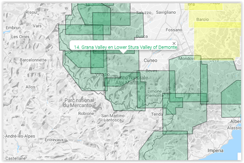 Gebied Aisone- Bernezzo- Caraglio- Castelmagno & Cervasca
