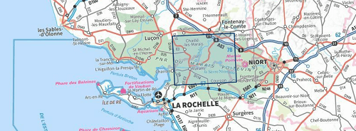 Productomschrijving: Deze vernieuwe versie van de TOP25 Série blue van IGN omvat de omgeving van Marans in het departement van de Charente-Maritime, in het arrondissement van La Rochelle in Aquitaine, en Maillezais, gelegen in het departement van de Vendée, in de regio van de Pays-de-la-Loire in het arrondissement van Fontenay-le-Comte.