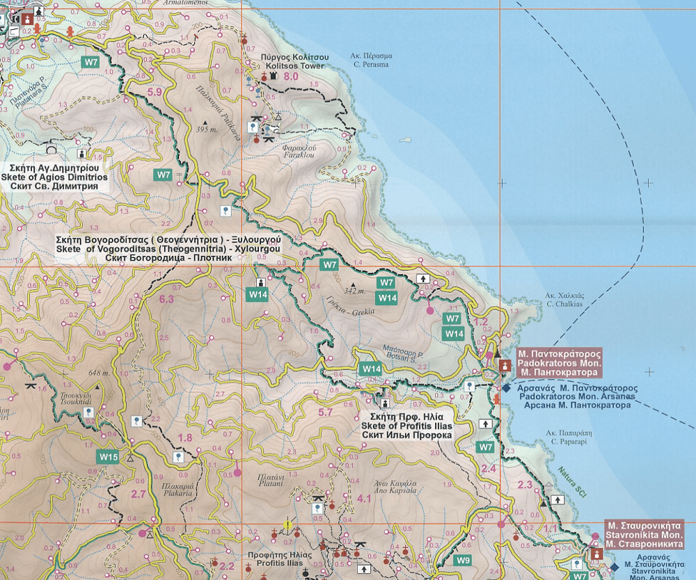 Wandelkaart 21 Mount Athos (UNESCO) + hiking routes - Road Ed.