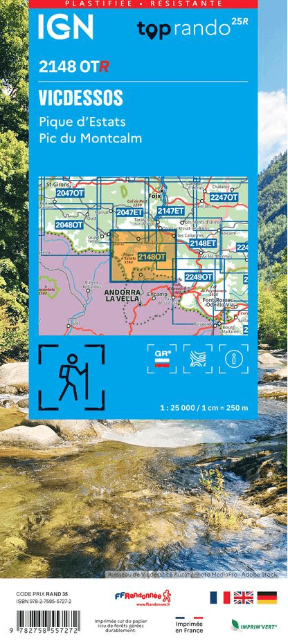 Wandelkaart Vicdessos & Pique d'Estats - IGN Productomschrijving: Deze geplastificeerde wandelkaart met nummer 2148 OT(R), omvat de regio rond Vicdessos, in het departement van de Ariège, in...