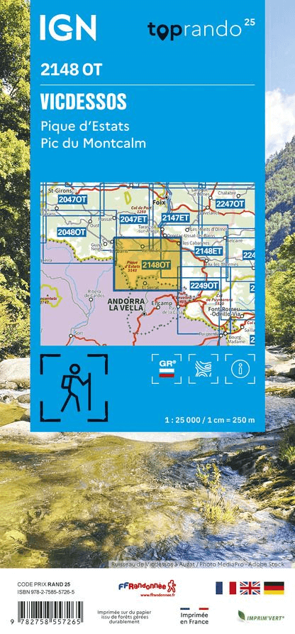 Wandelkaart Vicdessos & Pique d'Estats - IGN Productomschrijving: Deze geplastificeerde wandelkaart met nummer 2148 OT, omvat de regio rond Vicdessos, in het departement van de Ariège, in de...