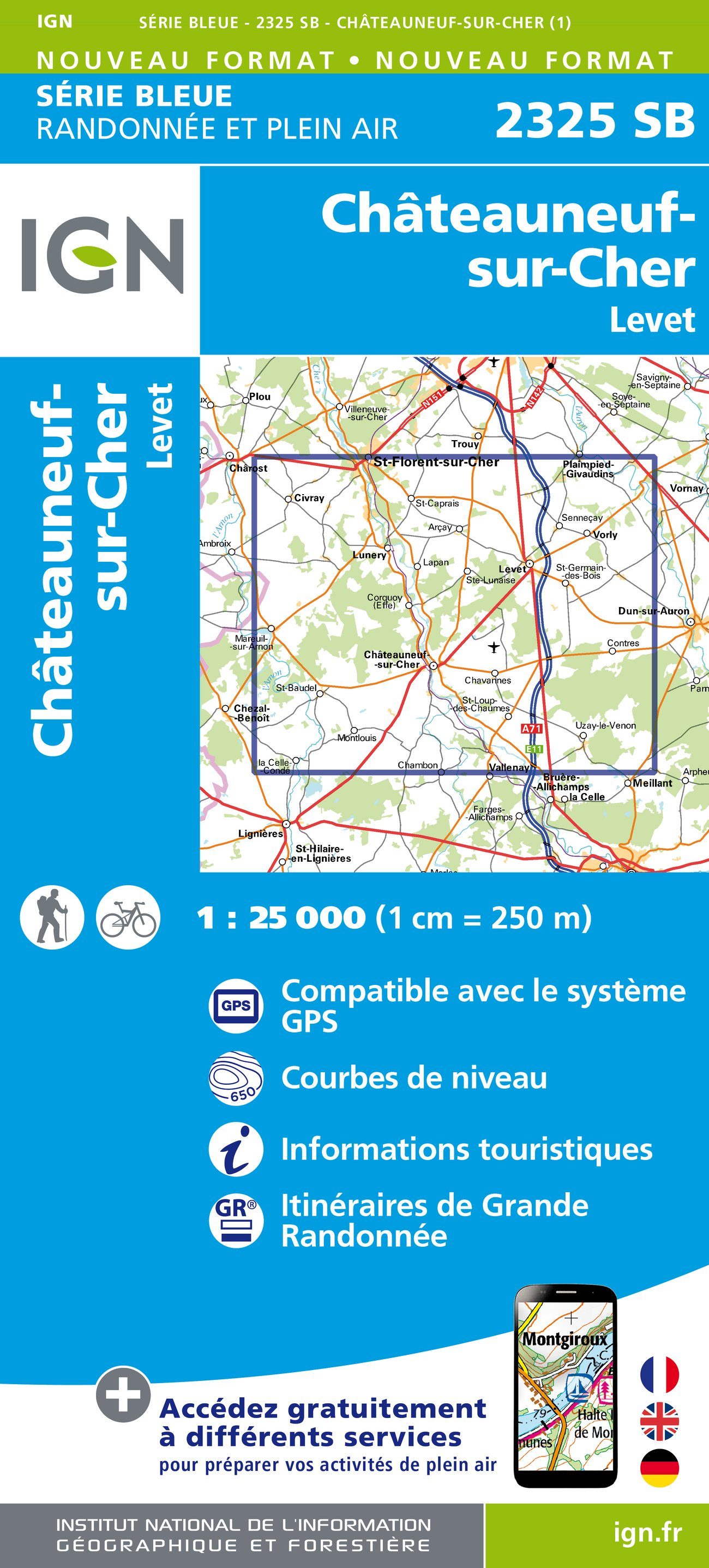 - Wandelkaart 2325 SB Châteuneuf-sur-Cher & Levet - IGN