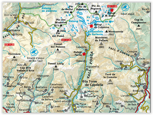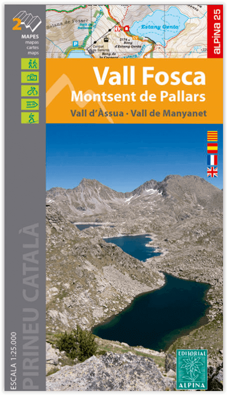 Wandelkaart Vall Fosca - Monstsent de Pallars - Alpina Productomschrijving: De donkere Pyreneeën-vallei In de centrale Pyreneeën, ten zuiden van Parc Nacional d'Agüestortes i Estany de S...