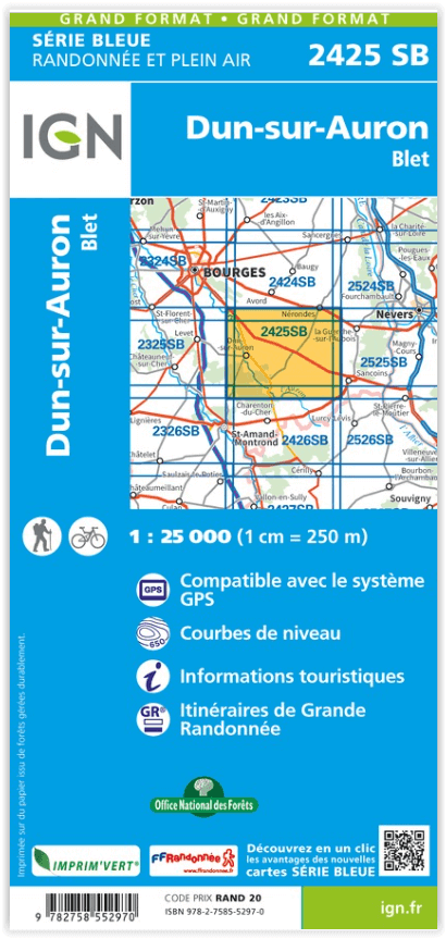 Wandelkaart 2425 SB Dun-sur-Aubron & Blet - IGN