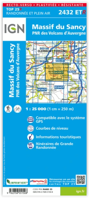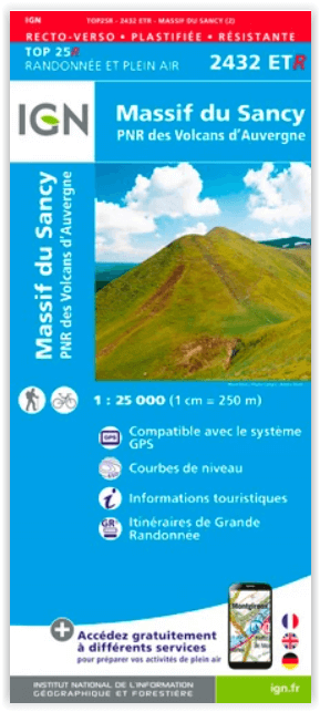 Wandelkaart 2432 ET(R) - Massif du Sancy & Auvergne Productomschirjving: Massief du Sancy is een piek in het Centraal massief in Frankrijk. Een regio die mooie wandelroutes bevat, en een geb...