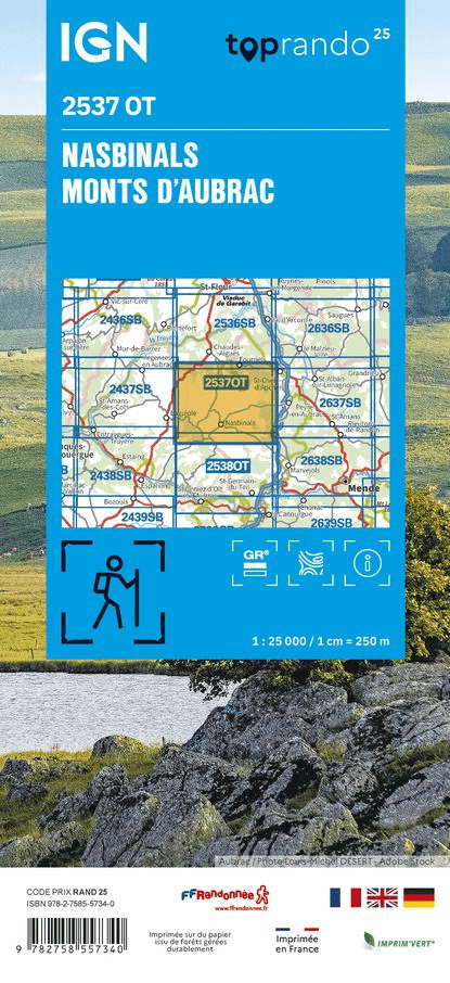 Wandelkaart Nasbinals & Monts d'Aubrac - IGN Productomschrijving: Deze vernieuwde versie van de kaart voor Nasbinals & Monts d'Aubrac, ligt in de regio van Occitanië in de departementen van ...
