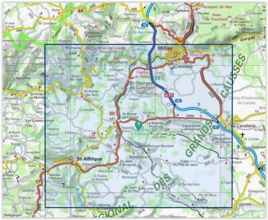 Productomschrijving: Deze omvat onder meer het Regionaal park van de Grands Causses.