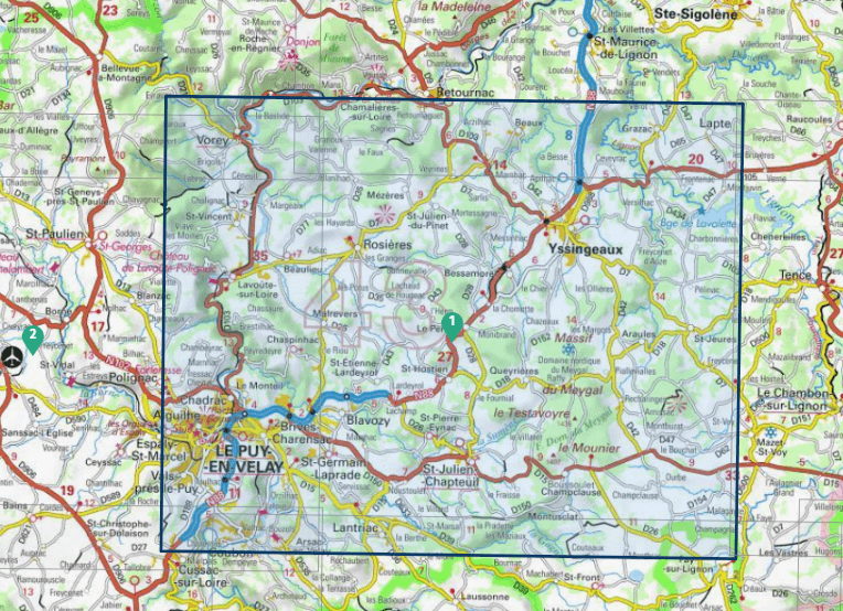 Wandelkaart Le Puy-en-Velay & Yssingeaux - IGN