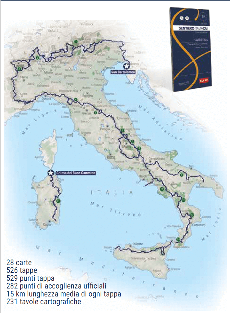De Sentiero Italia is een route die door gans Italië loopt, van Sardinië, naar Sicilië, naar de voet van Italië tot helemaal in het noorden, waar de route van links naar recht door Noord-Italië loopt. Elke heeft zijn kaart, en elk stuk omvat dan ook alle details om de route vlekkeloos overal doorheen te lopen. Met kaart op schaal 1:50.000 heeft u de perfecte wandeloverzicht en kunt u langs de route alles vinden die er op de Sentiero Italia te vinden valt. Neem uw tijd, deze route werd ontworpen om te genieten van elk aspect van het Iatliaanse landschap.
