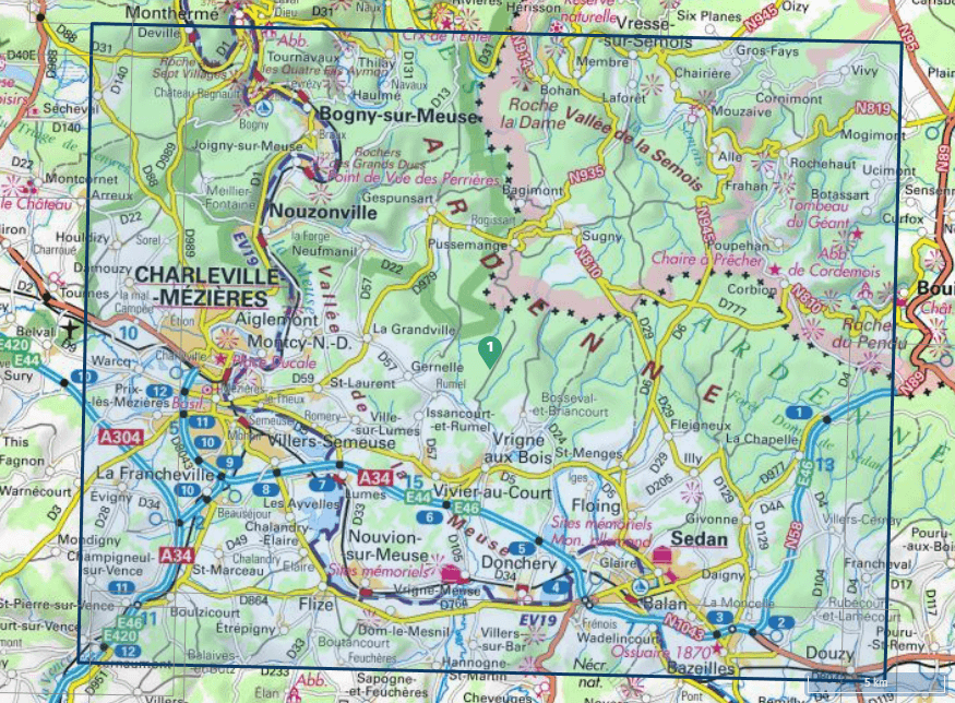 Wandelkaart Charleville Mézières & Sedan - IGN
