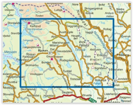 Productomschrijving: Deze kaart omvat: Rjukan - Tinnsjå - Veggli - Blefjell