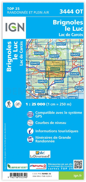 Wandelkaart 3444 OT Brignoles- Le Luc & Lac de Carcès - IGN
