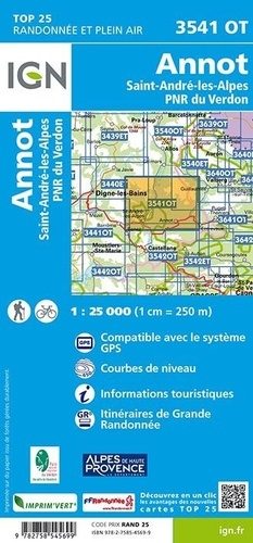 - Wandelkaart 3541 OT Annot & St-André les Alpes - IGN