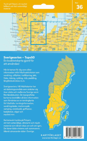 Elke kaart heeft een schaal van 1:50.000, wat zorgt voor optimale balans tussen detail en overzicht – ideaal voor wandelen, fietsen en andere buitensporten. De kaarten zijn gebaseerd op actuele gegevens van Lantmäteriet, het Zweedse nationale landmeetkundig instituut. Hierdoor bevatten ze betrouwbare en actuele informatie over wandelpaden, hoogtelijnen, meren, rivieren, bosgebieden, moerassen, wegen, sporen en bebouwing.