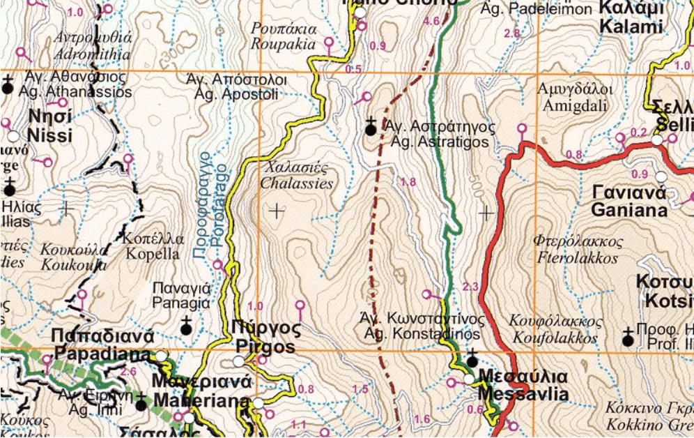 - Wandelkaart 406 Mt. Thriptis, Mt. Orno, Sitia, Zakros - Road Ed.