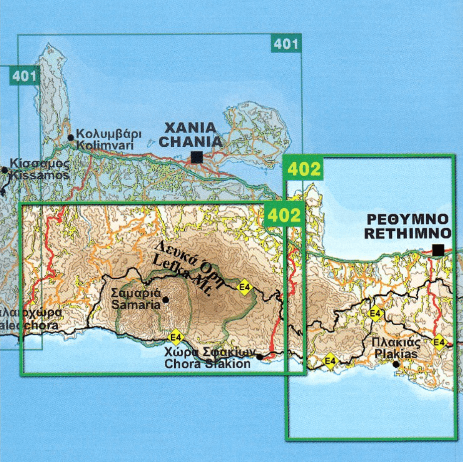 Wandelkaarten KRETA, 1:50.000 - 401 >> 406 Road Editions