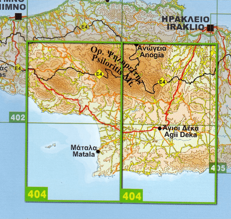 Wandelkaart 404 Psiloritis & Matala op Kreta - Road Editions