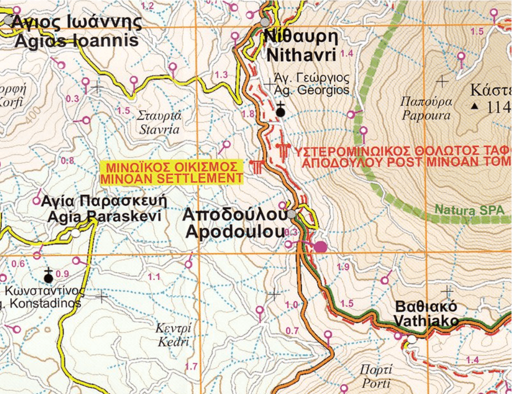 - Wandelkaart 406 Mt. Thriptis, Mt. Orno, Sitia, Zakros - Road Ed.