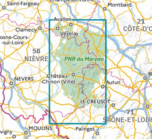 Wandelkaart Tour du Morvan - IGN