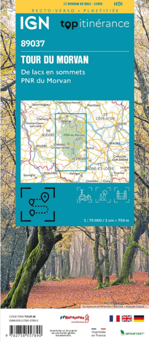 Wandelkaart Tour du Morvan - IGN Productomschrijving: Le Tour du Morvan is één van de dichtste routes voor de Belgen en de Nederlanders. De route loopt in- en rond het Parc Naturel Régional...