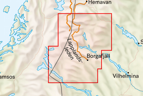 Deze kaart beslaat grote delen van het zuiden van Västerbottenfjällen en de meest noordelijke delen van Jämtland, van Kittelfjäll in het noorden tot Gäddede in het zuiden. Je krijgt een goed overzicht van Marsfjällen, Borgafjäll, Stora Blåsjön en Härbergsdalen en natuurlijk voor de hand liggende zaken als Saxnäs, Klimpfjäll en Stekenjokk.