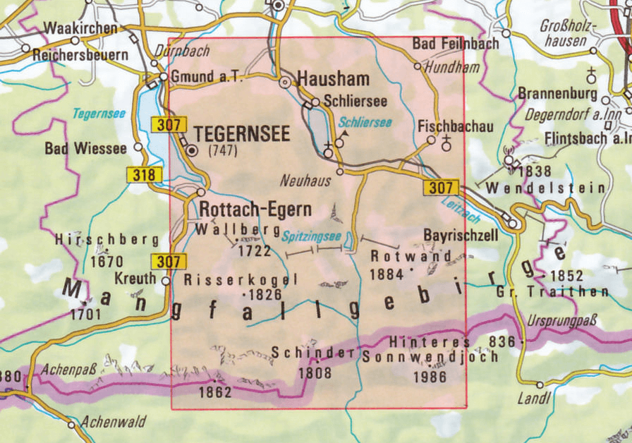 Wandelkaart Mangfallgebirge Mitte- Spitzingsee & Rotwand