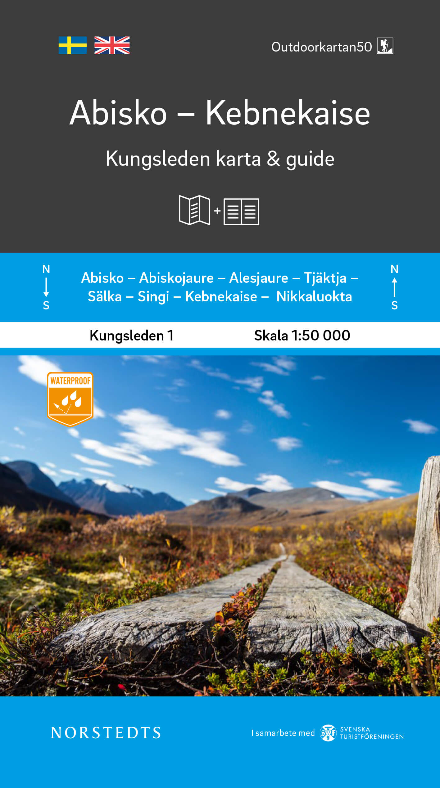 Detail omschrijving: Kungsleden kaart & gids 1:50 000 - Kungsleden - gemakkelijk toegankelijke wandeling door de magische bergwereld van Zweden! Kungsleden Kart & Guide is een serie van 5 delen tussen Abisko en Hemavan, die is ontwikkeld in samenwerking met de Zweedse VVV. Elk deel bestaat uit een set met een volledig waterbestendige bergkaart op schaal 1:50 000 en een begeleidende gids die de etappes van Kungsleden beschrijft met informatie over afstand, geschatte wandeltijd, berginformatie zoals rustbescherming, bruggen en extra telefoons, routebeschrijvingen en accommodatie onderweg, evenals praktische tips. voor je wandeling.